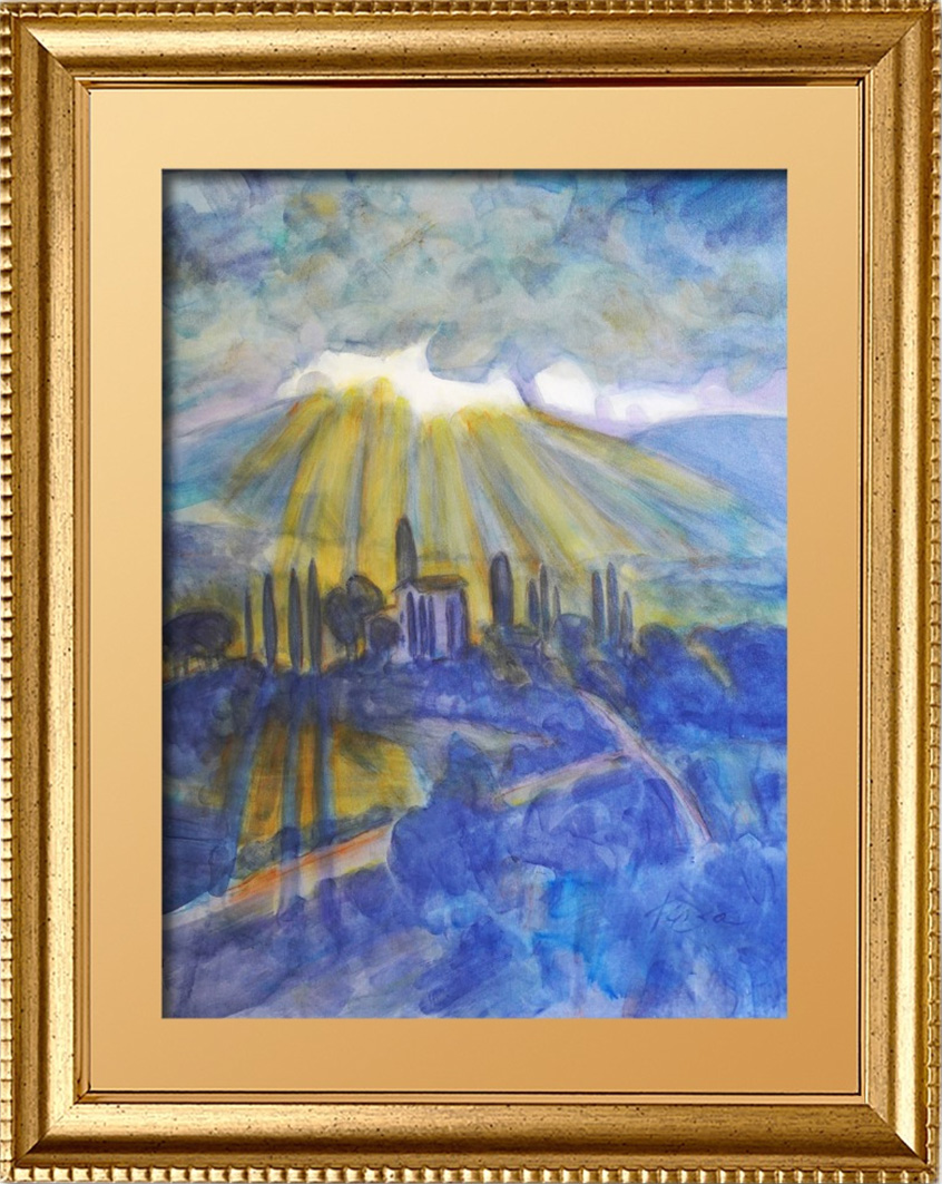 The opening three paintings in the carousel belong to the Dusk to Dawn series, capturing the shifting moods and radiant beauty of Tuscany across the different times of day. From the golden hush of sunrise to the deep serenity of twilight.